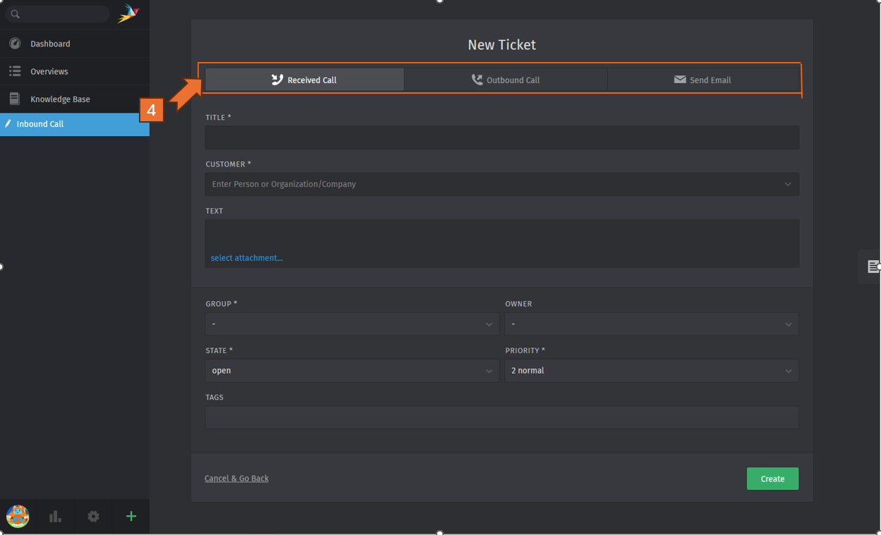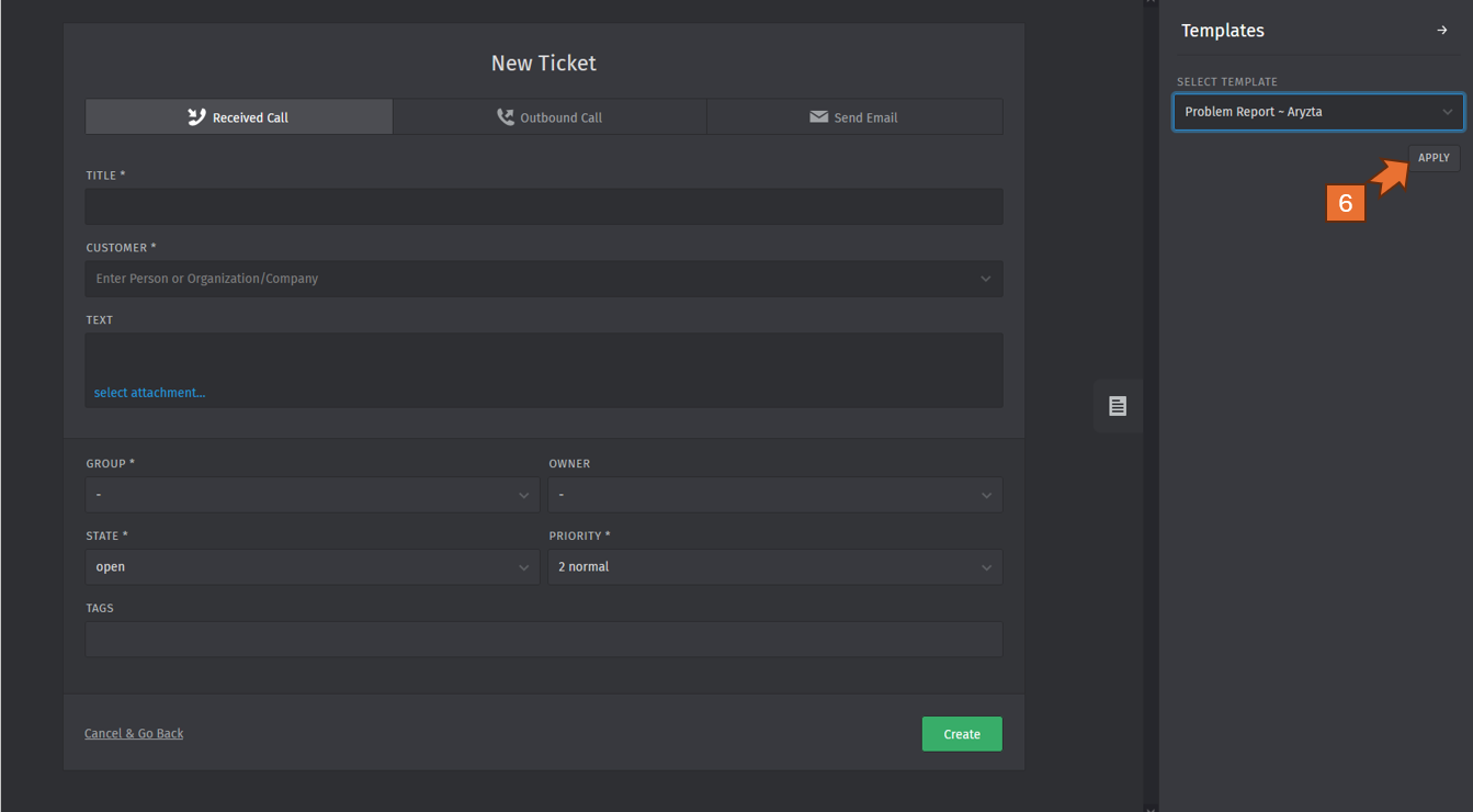 - Click the "+" button to create the new ticket.