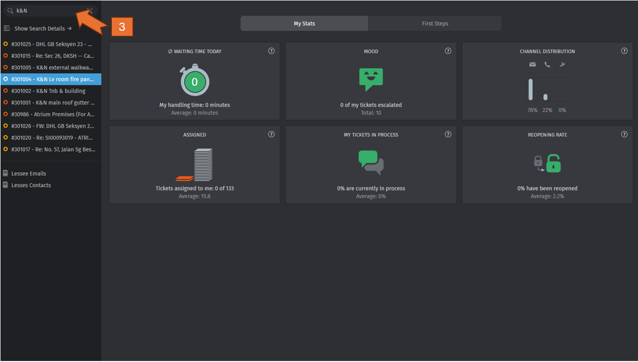 - Use the search bar to find specific tickets using keywords, ticket numbers, or other criteria.