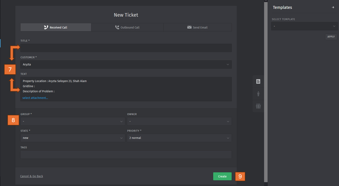 Please follow the step below for ticket creation.